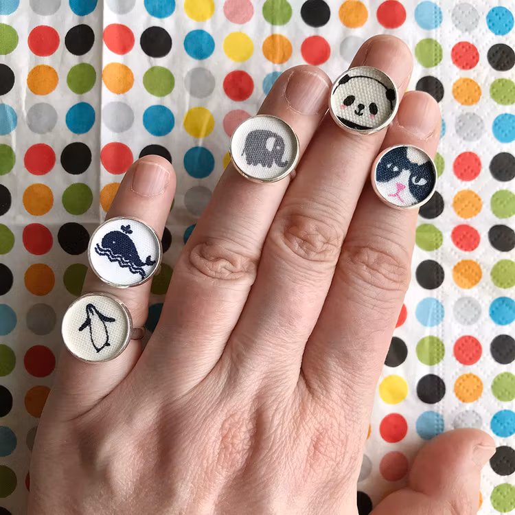 Storlek på motivet 1.4 cm. Storlek på ringdelen ca 1.6 cm. Ställbara, passar barnfingrar och lillfingret på många vuxna. Silverpläterade, nickelfritt.
